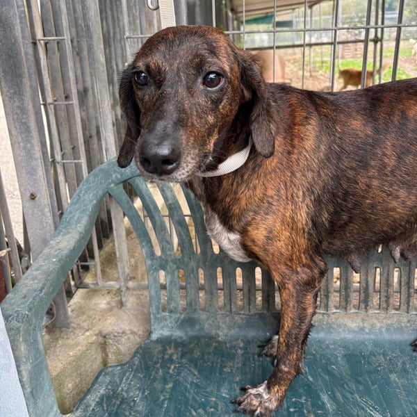 Monalisa ist eine sehr mütterliche, ruhige und ausgeglichene Hündin. Im Tierheim zeigt sie keinen Jagdtrieb und geht schon gut an der Leine. Sie ist liebevoll, treu und würde perfekt in eine Familie mit Kindern passen. Margara hat sie bisher noch nie bellen hören , ein echter Familienhund durch und durch.