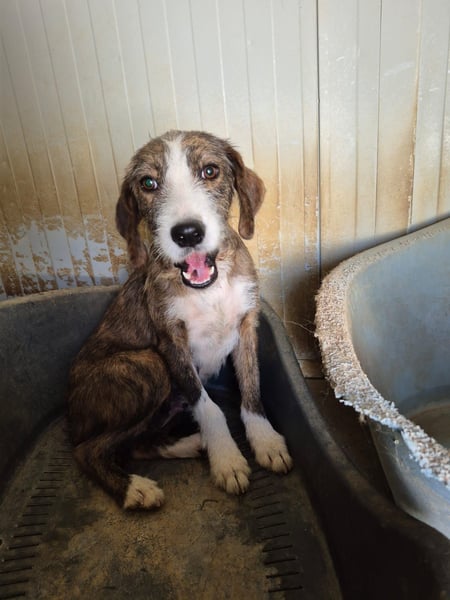 Mama Divina wurde vor kurzem zusammen mit ihrer Tochter Dakota eingefangen. Vermutlich waren sie von einem Jäger zum Jagdeinsatz geschickt worden, gingen verloren, oder wurden zurückgelassen. Zum Glück konnten sie zusammen gesichert werden. Es ist eine gängige Praxis junge Hunde mit älteren auf die Jagd zu schicken, um zu testen, ob sie ihre Sache gut machen. Die diesjährige Jagdsaison hat begonnen und viele Hunde teilen sich wieder, über die nächsten Monate, das gleiche Schicksal. Divina ist ca. 16 kg schwer und 52 cm hoch, sie hat sehr große Zitzen, als hätte sie vor kurzem nochmals Babys bekommen. Sie kam aber nur mit diesem einen Welpen ins Canile. Durch die Einfangaktion ist sie noch etwas eingeschüchtert, aber das gibt sich sicher schnell. Der Segugio ist eine ital. Laufhundrasse, ist daher gerne mit seinen Menschen in der Natur unterwegs und bei entsprechender Auslastung im Haus ein sehr angenehmer und ruhiger Mitbewohner. Wenn Sie der ca. 07/2023 geborenen Divina ein Zuhause geben möchten, gerne bei mir melden.