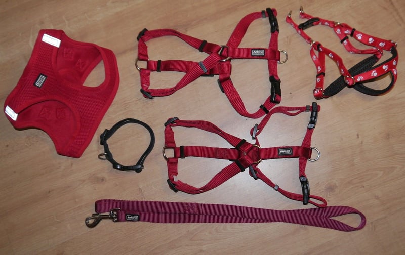 6tlg AniOne H-Geschirr Classic Gr. M/L + Hundehalsband + Hundeleine – Z