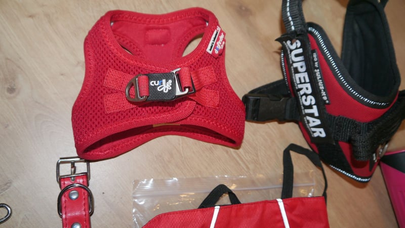9tlg Hundegeschirr Julius K9 Gr. XS + Leine+ Wassernapf Outdoor+ Hunderegenmantel+ Haarentferner-D