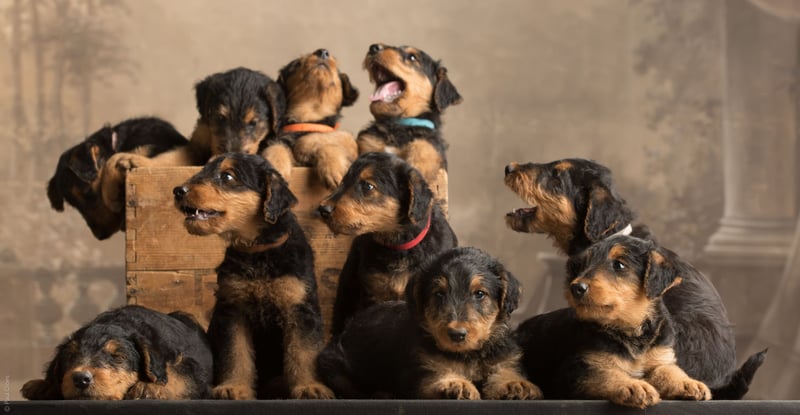 Wir züchten seit 33 Jahren Airedales mit gerade Schwänzen & tollem Charakter. Alle Hunde leben bei uns zu Hause in der Großfamilie. Am 1.7.25 haben wir 10 Welpen von Lotte & Max Maximus bekommen . Ein Bub und ein Mädel suchen ab 25.9 ein neues Zuhause