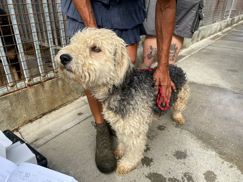 Hallo, ich bin Lonci, eine Airdale Mischlingshündin. Zusammen mit meinem Kumpel Maszola (auch bei uns in der Vermittlung / Website) bin ich im Juni auf die Station gekommen. Mein Halter musste mich/uns aus Altersgründen abgeben. Es wäre schön, wenn wir unser Leben weiter zusammen verbringen könnten.