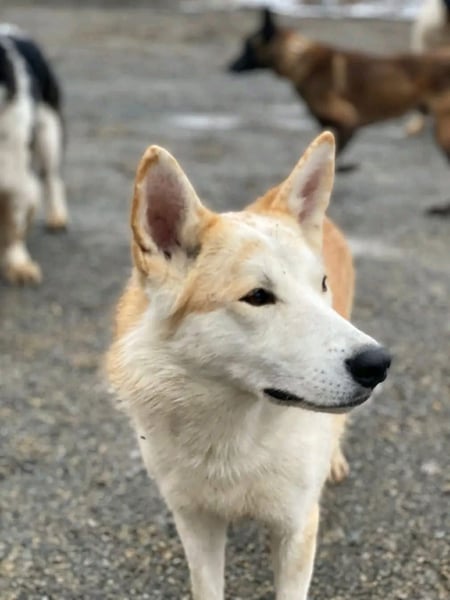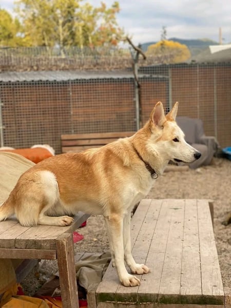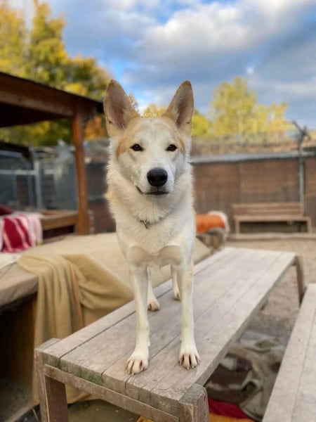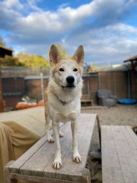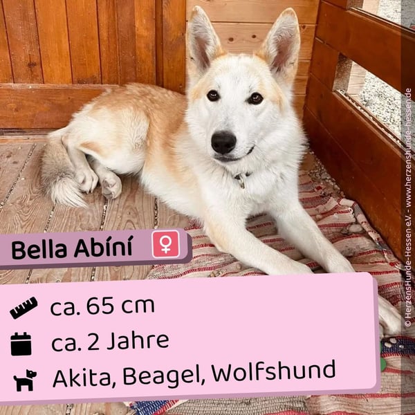 Bella Abíní ist ein wilder Mix aus Tschechoslowakischem und Amerikanischem Wolfshund, Beagle, Amerikanischem und japanischem Akita sowie deutschem Schäferhund und lebt seit einer Weile in einem unserer Tierheime in der Slowakei.