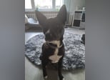 Er bleibt alleine und kann autofahren .Er braucht jemanden, der ihn halten kann,wenn er an der Leine zieht.Er ist kein Anfängerihund.