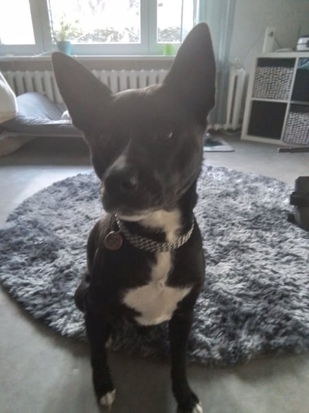 Er ist 50 cm hoch und ca. 25 Kilo schwer.Er kennt die Grundkommandos,