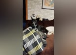 Zuhause ist er sehr unauffällig: Er liegt meist an seinem festen Platz und drängt sich nicht auf. Mit Spielzeug beschäftigt er sich nur nachts, wenn alles ruhig ist und er sich sicher fühlt.