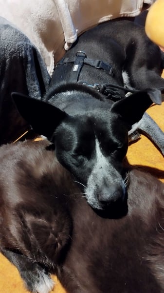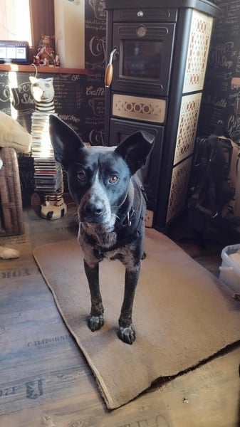 Er ist mit Hunden verträglich und zeigt kein Ressourcenverhalten (würde eher verzichten als Konflikte einzugehen).