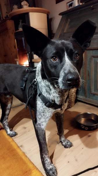 Spaziergänge liebt er sehr. Draußen blüht er sichtbar auf und zeigt dort auch Spielverhalten. Er ist aufmerksam, neugierig, gut ansprechbar und zeigt keinen Jagdtrieb. Umweltreize wie Autos oder Fahrräder sind kein Problem. Innenstadt oder ÖPNV wurden bisher nicht getestet.