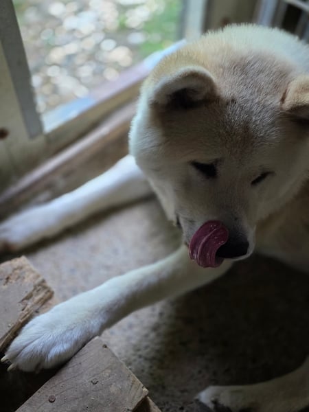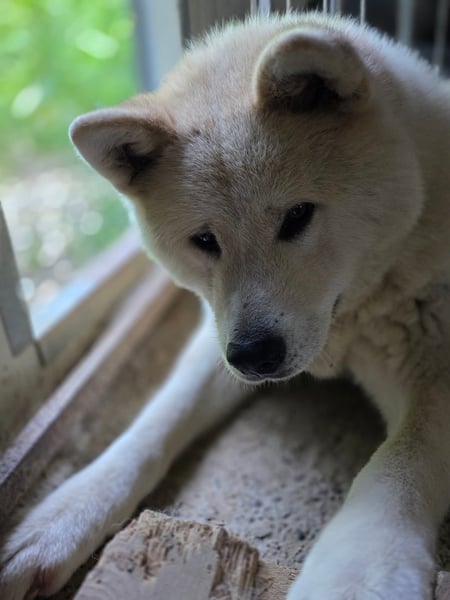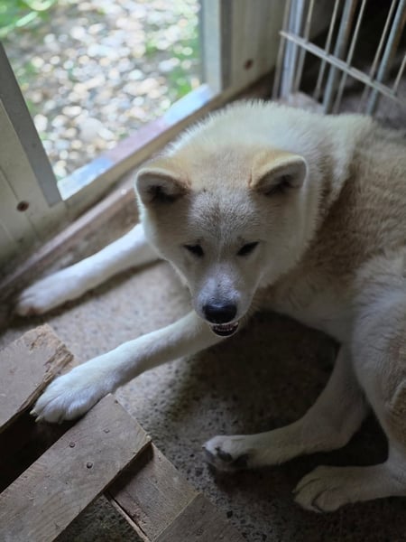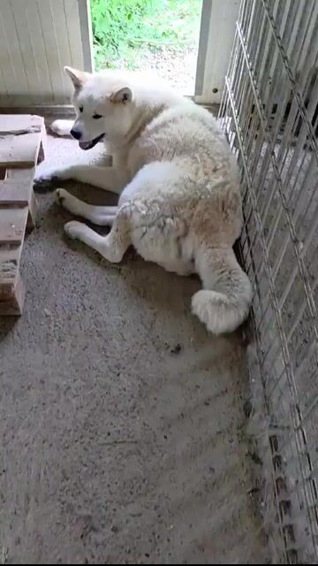 Diese wunderschöne Akita Hündin wurde zusammen mit ihrer Tochter von ihrem Besitzer in die Tötung gebracht weil sie sich eins seiner Hühner geholt hatten.