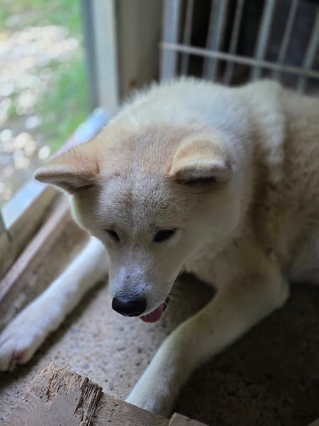 Aky ist eine sehr freundliche Akita Hündin, die wieder einmal zeigt, dass auch Rassehunde in der Tötung landen können.