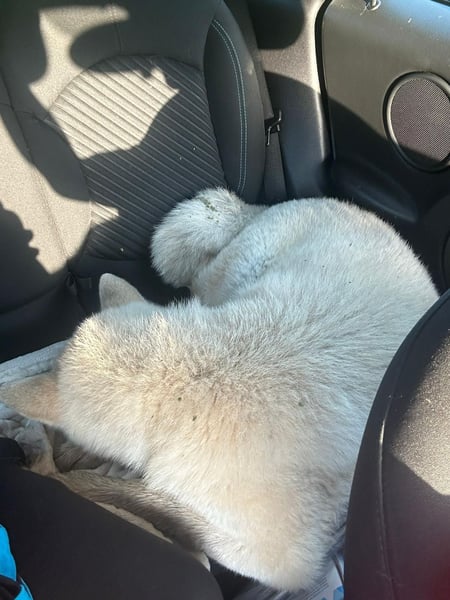 Aky reist kastriert, gechipt, geimpft und gegen Parasiten behandelt mit EU Ausweis in ihr neues Zuhause.