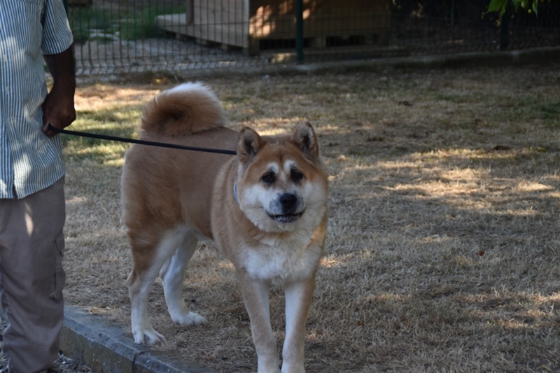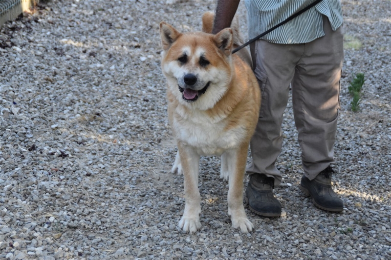 Till wurde auf der Straße gefunden. Seine Herkunft und Vergangenheit sind nicht bekannt. Er ist ein stattlicher Senior imposanter Größe. Da wir seine Vergangenheit nicht kennen, können wir noch keine Details über sein Verhalten sagen. Als wir am Zwinger auftauchten war er zunächst skeptisch, hat dann aber unsere Steffi als sie im Zwinger war, freudigst begrüßt. Auch seinen Pfleger liebt er über alles. Leider kann ihm im Tierheim weder die Aufmerksamkeit noch der Auslauf geboten werden, den so ein Hund braucht. Akita Inu typisch ist er vermutlich sehr selbstständig und wir vermitteln ihn daher nur in entsprechend erfahrene Hände. Wenn Till Ihr Interesse weckt, melden Sie sich bitte per Email bei mir. Ich rufe dann gerne zurück.
