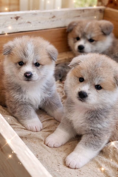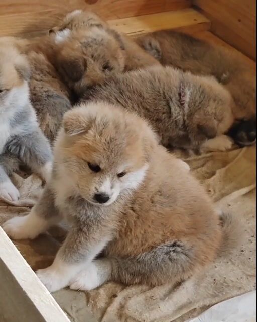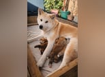 Wunderschöne Japanische Akita Inu Welpen, geboren am 19.02.2026, wachsen liebevoll in familiärer Umgebung auf.