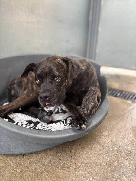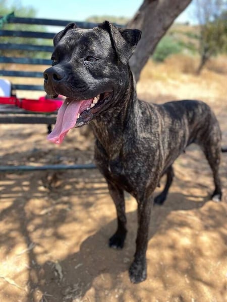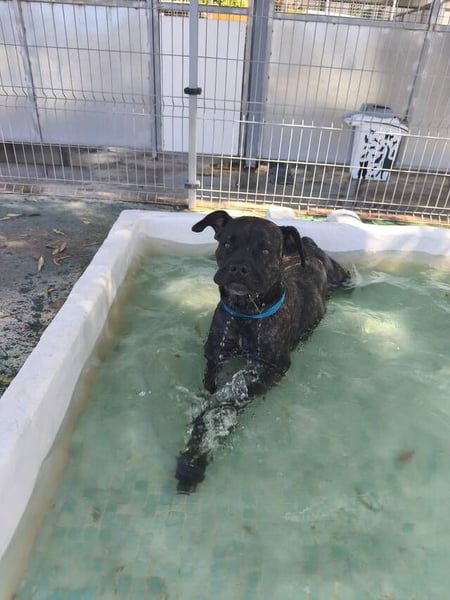 Tana (*ca. 30.09.2022, ca. 59 cm) ist eine super süße Alano-Mischlings-Hündin – ihr Blick verleitet einfach dazu, ihr Gesicht knuddeln zu wollen! Tana ist eine wirklich liebenswerte Maus, und unser Team ertappt sie oft in den niedlichsten Momenten, sei es beim Baden im Pool oder beim Kuscheln in ihrem Bett.