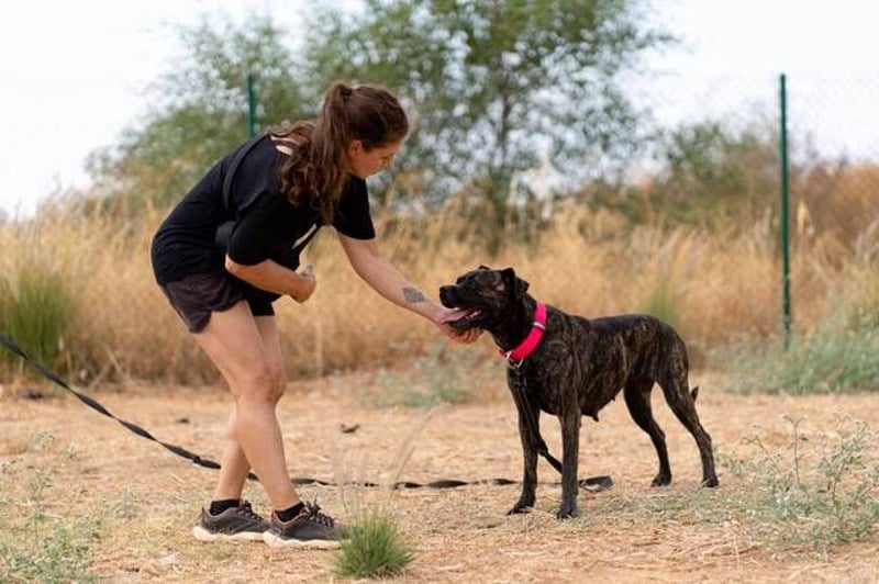Tana ist eine sehr schlaue Hündin, die viel lernen muss, aber mit einer liebevollen Anleitung und vielleicht einem stabilen männlichen Hundebegleiter wird sie sich perfekt anpassen. Tana hat viel Energie und möchte ein guter Abenteuerbegleiter sein. Sie liebt es, im Wasser zu spielen, und ist sehr unterhaltsam! Sie braucht dringend eine Bezugsperson, die sie körperlich handhaben kann – besonders in der Anfangszeit, in der sie lernen muss, ruhig an der Leine zu gehen, während sie merkt, dass sie nun mehr als einen Spaziergang pro Woche bekommt und die benötigte körperliche Auslastung erhält.