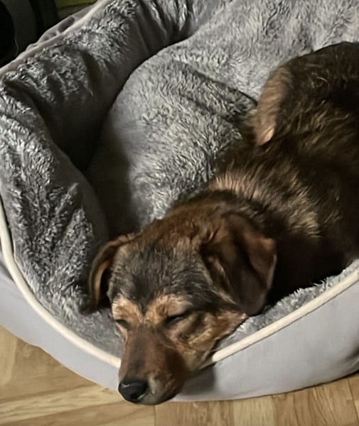Sky ist ein ca. 2 Jahre altes Mädchen, (geb. 16.08.2023), etwa 30 cm groß und wiegt rund 9 kg. Vermutet wird eine winzige Alpenländische Dachsbracke Mischling. Sie ist mit kurzer Rute geboren.