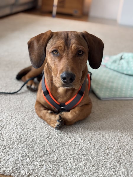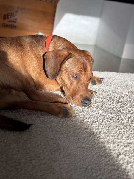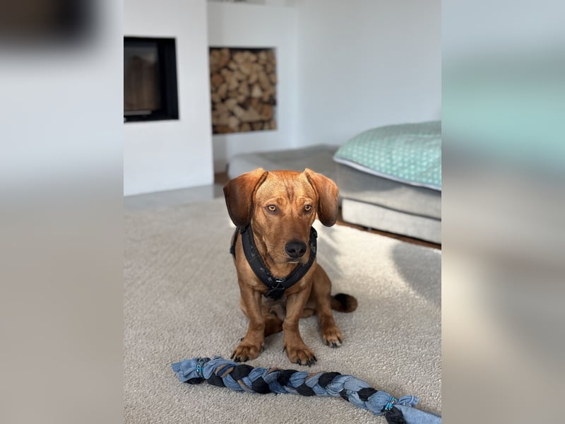 Bruni ist ein kluger, aktiver und lernfreudiger Rüde mit viel Persönlichkeit. Er ist kastriert, gechippt und geimpft, wurde am 13.12.2024 in München geboren und wiegt aktuell ca. 17 kg. Ein Gentest hat ergeben, dass er zu einem Viertel Bracke ist.