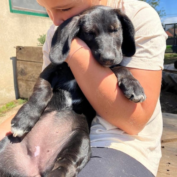 Dudda ist ein Mädchen, sie ist ca. 4,5 Monate alt (geb. bekannt am 30.05.2025). Ihre Mama ist eine reinrassige Alpenländische Dachsbracke, über den Papa weiß man leider nichts. Alle Welpen aus dem Wurf haben die Körperbau wie Mama, auch kürzere Beinchen und Schlappohren. Wird ausgewaschen tiefergelegt kleiner bleiben, bis ca. 15kg.