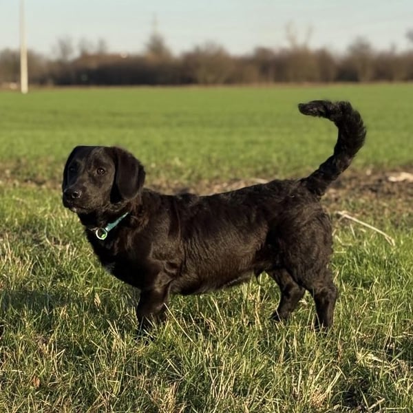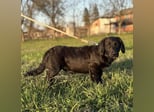 Cody ist ein Bub, er ist ca. 6 Monate alt (geb. bekannt am 30.05.2025). Seine Mama ist eine reinrassige Alpenländische Dachsbracke, über den Papa weiß man leider nichts. Alle Welpen aus dem Wurf haben den Körperbau wie die Mama, mit kürzeren Beinchen und Schlappohren – nur Cody fällt etwas aus der Reihe, denn er ist der Einzige, der ein leicht gewelltes Fell bekommen hat.