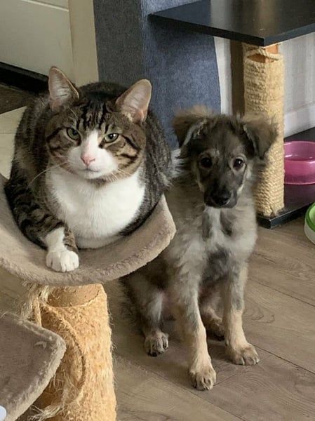 Mit anderen Hunden kommt Suki gut zurecht, orientiert sich an ihnen und profitiert sichtbar von ihrer Ruhe und Souveränität. Deshalb wünschen wir uns für sie ein Zuhause mit einem bereits vorhandenen, ausgeglichenen Ersthund, der ihr Sicherheit geben kann. Auch Katzen begegnet sie freundlich und vorsichtig.