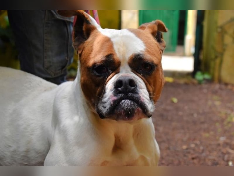 Die weiße Hündin mit dem braun-weißen Kopf fällt aber nicht nur wegen ihrer Rassezugehörigkeit auf. Nein, es ist der Ausdruck in ihrem Gesicht, der dem eines Menschen nicht ganz unähnlich ist. Sie wirkt selbstbewusst, witzig erst auf den zweiten Blick, der Schalk scheint ihr im Nacken zu sitzen. All dies und noch viel mehr haben der lieben Nereida aber leider nicht wirklich etwas genützt, denn seit März 2022 sitzt sie alleine in einer Box in einem der Tierheime Italiens. Dass sie alleine gehalten wird, könnte mit ihrer Rasse zu tun haben. Bulldoggen sind in der Regel ihren Menschen gegenüber äußerst loyal und beschützend, sie finden aber Artgenossen in ihrer näheren Umgebung eher störend, sofern sie nicht schon sehr früh mit anderen Hunden sozialisiert worden sind.