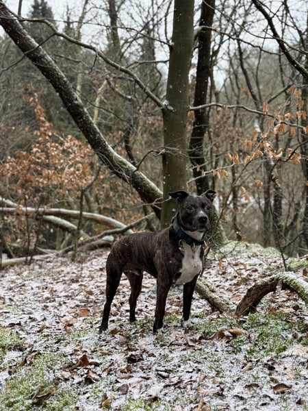 Er ist super gut erzogen, zieht nicht an der Leine, geht bei Fuß und kann einige ziemlich coole Kommandos :)