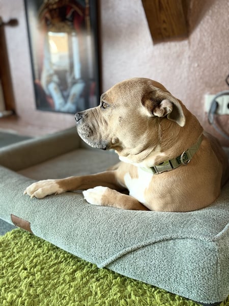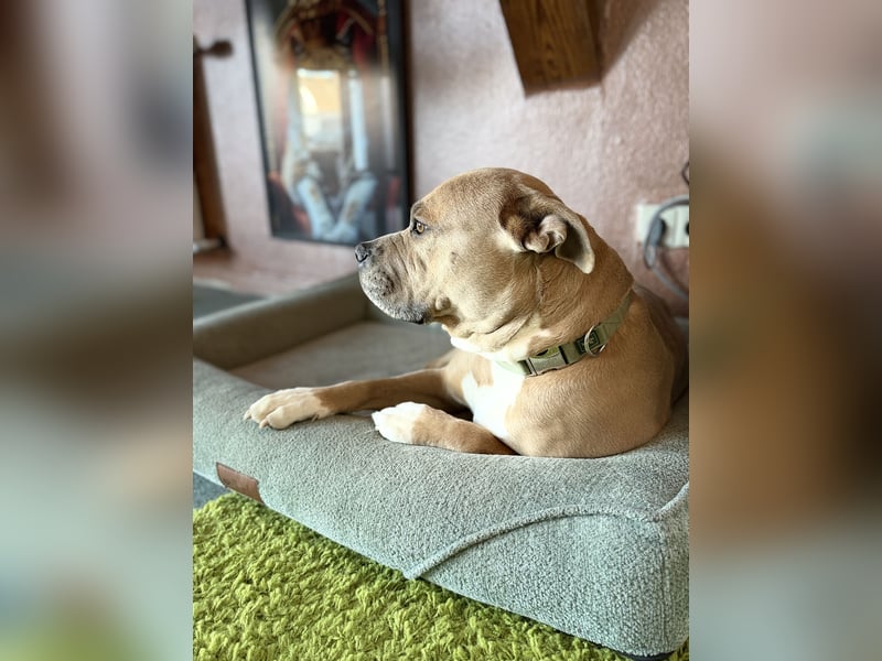 Bonny ist nicht für jeden bestimmt. Wenn ich spüre das Sie der richtige sind, wird Bonny ein neues Kapitel in ihrem Leben anfangen. Die richtige Person wird viel Vergnügen mit diesem wunderschönen und starken Hund haben. Am 18. November 2019 geboren. Amarican Bulldog/American Stafford.
