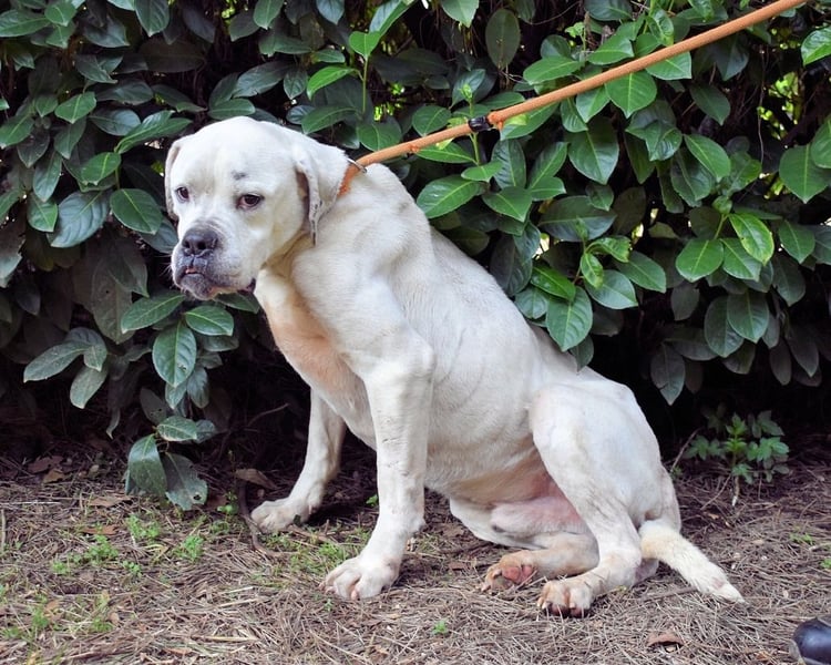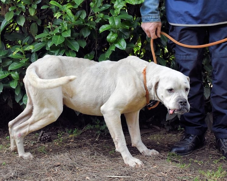 Heute, nach 7 Jahren Hundehölle, sehen wir einen Hund, den wir kaum wiedererkennen. Dollaro ist inzwischen erschreckend abgemagert. Sein Körper ist nur noch Haut und Knochen, sein Gesicht eingefallen. Doch das Schlimmste ist sein Blick, er ist … einfach leer. Nicht mehr bittend wie vor drei Jahren und erst recht nicht neugierig wie zu Beginn. Wir wissen nicht genau, warum er so stark abbaut. Vielleicht ist es die Einsamkeit. Vielleicht die Hoffnungslosigkeit eines Lebens, das seit Jahren aus Beton, Gittern und Stille besteht.