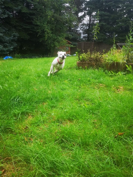 Branca wurde vor 2,5 Jahren in eine Familie vermittelt. Vor der Vermittlung zeigte sich Branca sehr unkompliziert. Sie bestand kurz nach der Vermittlung einen Wesenstest mit bravour.