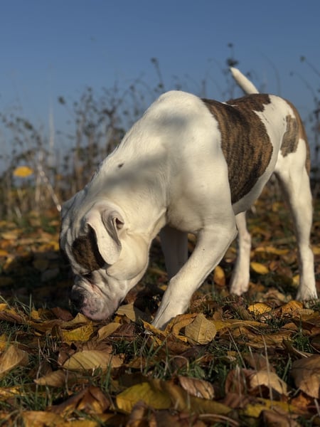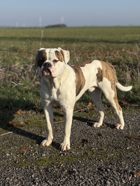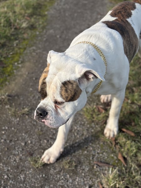 Auf diesem Weg suche ich für meinen 1 Jahr alten American Bulldog Rüden Tyson ein neues liebevolles Zuhause auf Lebenszeit.
