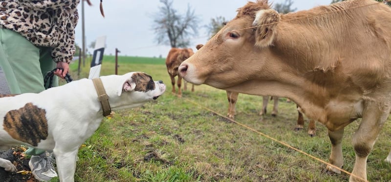 An der Leine läuft Tyson super, außer er erschreckt sich vor etwas oder hat einfach Angst (passiert selten) dann kann er auch mal gut ziehen. Mit etwas Training sollte das aber schnell Geschichte sein.