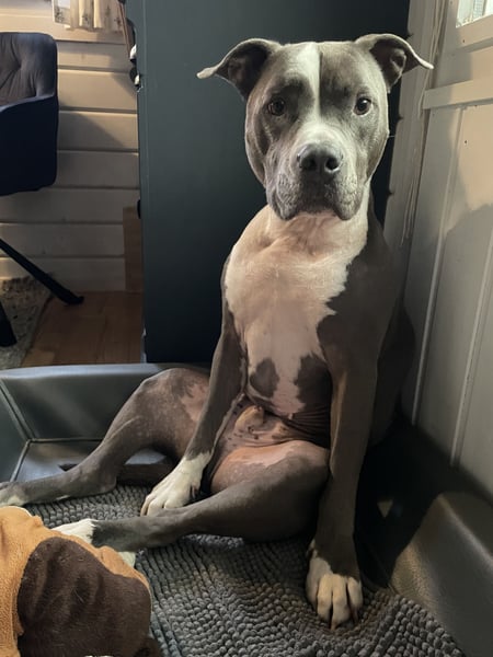 Hallo, mein fünfjähriger kastrierter American Bully Rüde sucht ein neues zuhause. Er ist ein absoluter Schmusebär und gut erzogen. Warum sucht er ein neues zuhause?: Wir leben mit unseren zwei Hunden im Vanlife und sind mindestens acht Monate im Jahr mobil unterwegs. Leider verträgt er das lange Autofahren überhaupt gar nicht mehr und ist so aufgeregt, das wir Angst haben dass er Schaden nimmt. Er ist wie gesagt verschmust, liebt spazieren gehen und kuscheln. Katzen mag er nicht da er beim toben wild sein kann würden wir ihn nicht in einen Haushalt mit kleinen Kindern geben. Anderen Hunden gegenüber ist er mal desinteressiert mal offen, im Prinzip reicht ihm aber der Kontakt zu Herrchen/Frauchen. Er kann allein sein und ist selbstverständlich stubenrein.