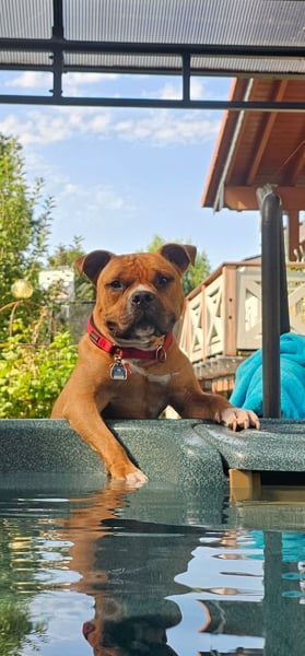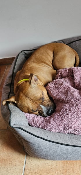 Er ist verschmust und sehr menschenbezogen. Ein richtiger Kuschelhund.