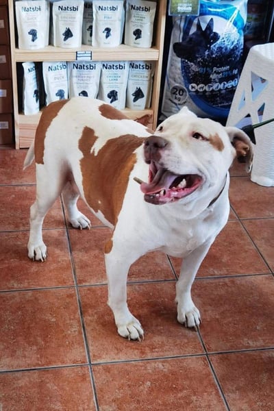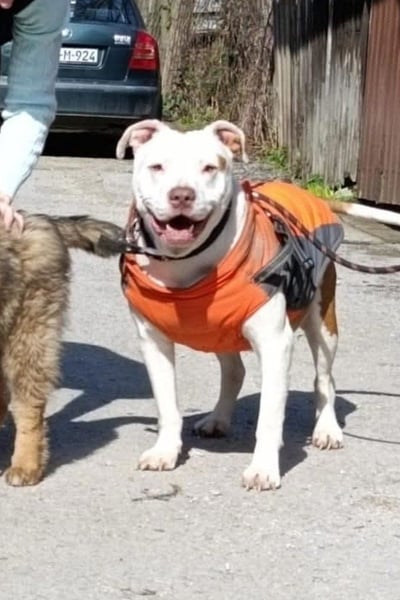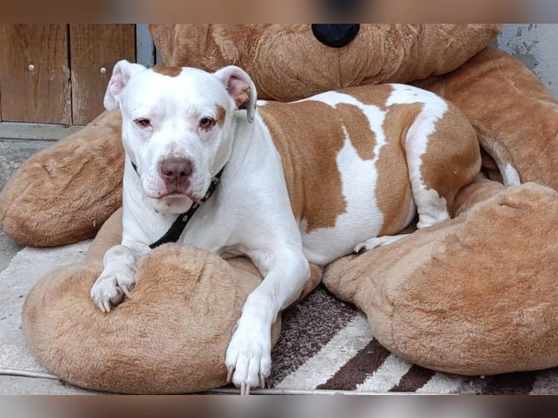 Tuty ist ein ausgesprochen lieber American Bully-Mischling im besten Alter. Auch wenn er kein junger Hund mehr ist, hat er sich seine Lebensfreude und seine liebevolle Art bewahrt. Er zeigt sich als sehr sozialer, freundlicher und verschmuster Begleiter, der die Nähe zu Menschen über alles liebt. Egal ob mit anderen Hunden, Katzen oder Kindern – Tuty versteht sich mit allen und begegnet jedem offen und herzlich. Er ist den Umgang mit Menschen gewohnt und genießt jede Form von Aufmerksamkeit, sei es durch ausgiebige Streicheleinheiten, gemeinsames Spielen oder einfach ruhige Momente in Gesellschaft. Seine sanfte, treue Art macht ihn zu einem wunderbaren Freund fürs Leben, der seinem Menschen jeden Tag aufs Neue Freude schenkt. Für Tuty wünschen wir uns ein Zuhause, in dem er in Ruhe ankommen darf. Menschen, die ihm die Zeit geben, sich an seine neue Umgebung zu gewöhnen und ihm mit Geduld und Verständnis begegnen. Ein warmes, kuscheliges Körbchen, gemeinsame Unternehmungen und viele liebevolle Kuschelstunden sollten ebenso selbstverständlich sein wie das Gefühl, endlich dazuzugehören. Tuty sucht keinen perfekten Haushalt – er sucht ein Herz, das ihn aufnimmt und ihm zeigt, wie schön ein Hundeleben sein kann.