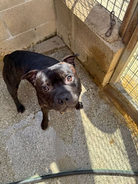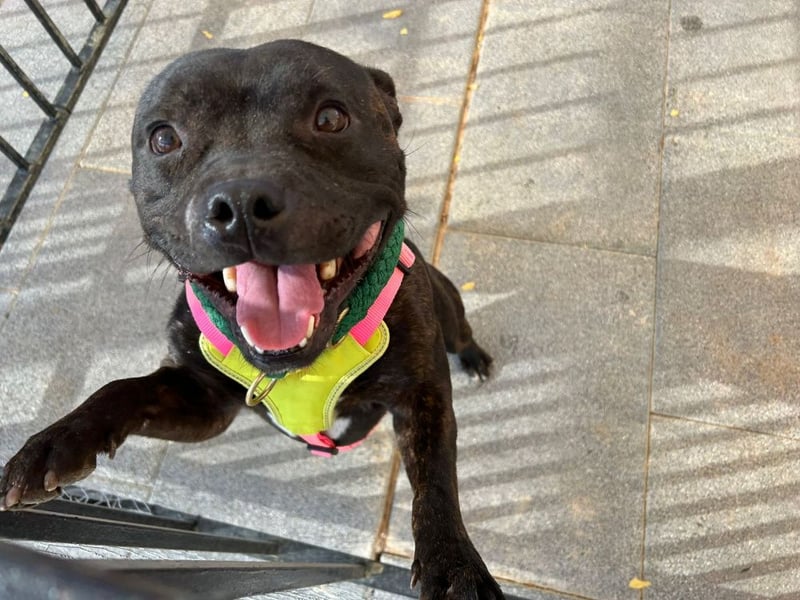 Schokodrops, Sonnenschein, Knutschkugel, Love Bug, Kuschelexperte … die Liste könnte ewig so weitergehen, wenn es um unseren Hachi geht. Der dreieinhalb Jahre alte (Stand 11/2025) Rüde ist ein fröhlicher American Bully, der bei unseren Freunden von El Buen Amigo auf ein neues Zuhause wartet.