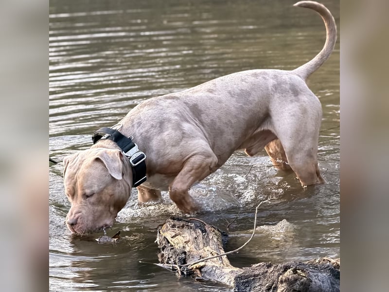 American Bully XXL HD&ED-frei Tricolor Lilac Merle Deckrüde XL erfahren abkc reinrassiger