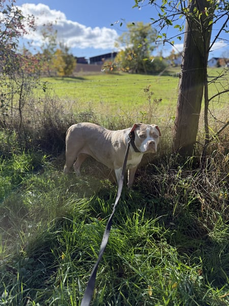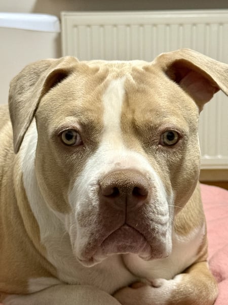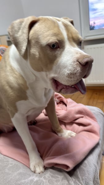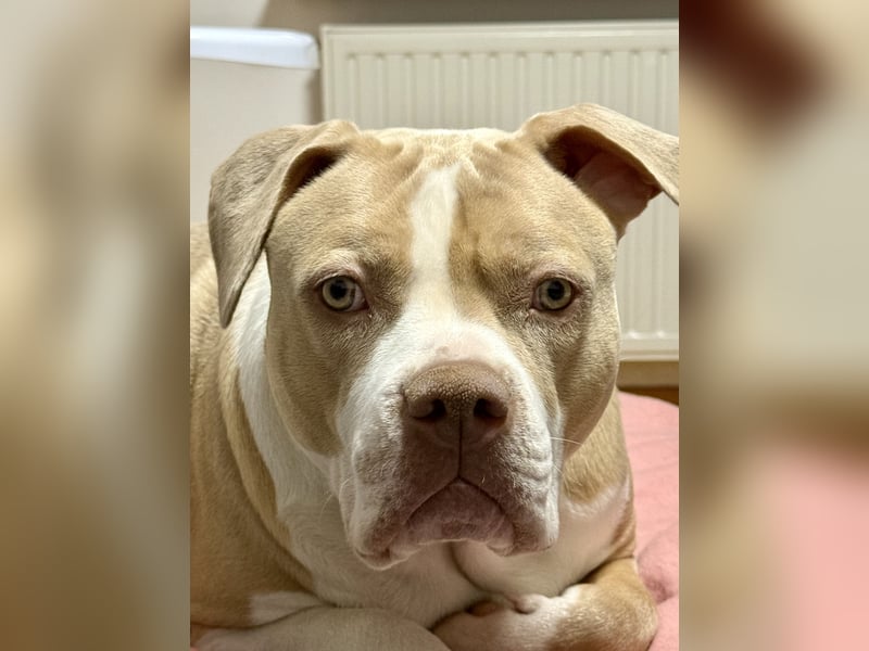 Unsere American Bully XL Hündin, geboren im September 2024, sucht schweren Herzens ein neues, liebevolles Zuhause, da unsere Tochter leider eine Hundeallergie entwickelt hat.