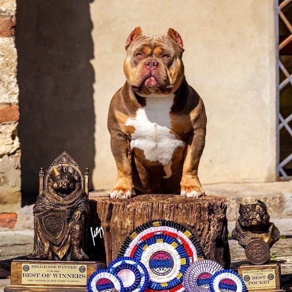 The father of the puppies is a well-known and recognized champion, DA KINGSLAYER, winner of ABKC exhibitions in Serbia, Italy and the Netherlands. In addition to its obvious and proven beauty, this dog also impresses with its temperament.