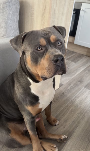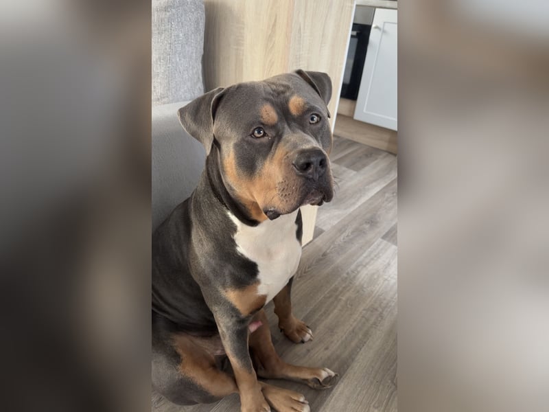 Schweren Herzens suche ich ein neues, liebevolles Zuhause für meinen 16 Monate alten American Bully XL, da sich bei mir beruflich einiges verändert hat und ich ihm zeitlich leider nicht mehr gerecht werden kann.