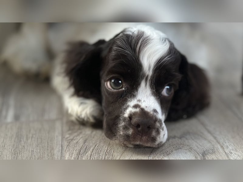 Hiermit biete ich Ihnen einen wunderschönen und gesunden American Cocker Spaniel Rüdenwelpen an, geboren am 28.06.2025. Er ist ein sehr verspielter, lieber und freundlicher Welpe. Er würde sich auch bei Hundeausstellungen gut machen, wäre aber auch eine großartige Wahl als Familienhund. Er kann mit 4 Impfungen, parasitenfrei, FCI - Export-Stammbaum und EU-Pass am 21.10.2025 zu Ihnen ausreisen.