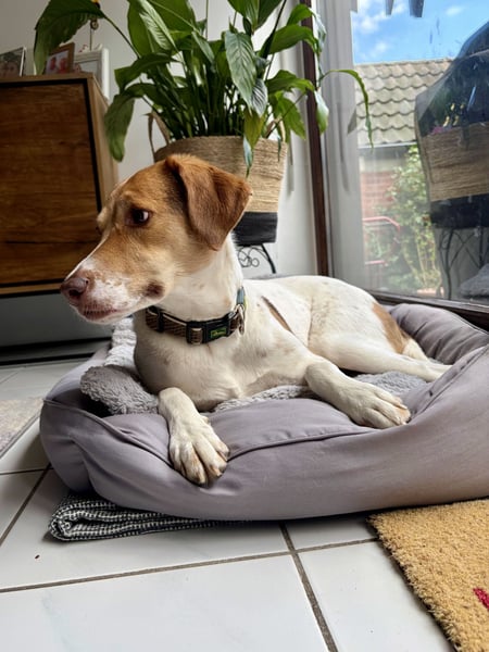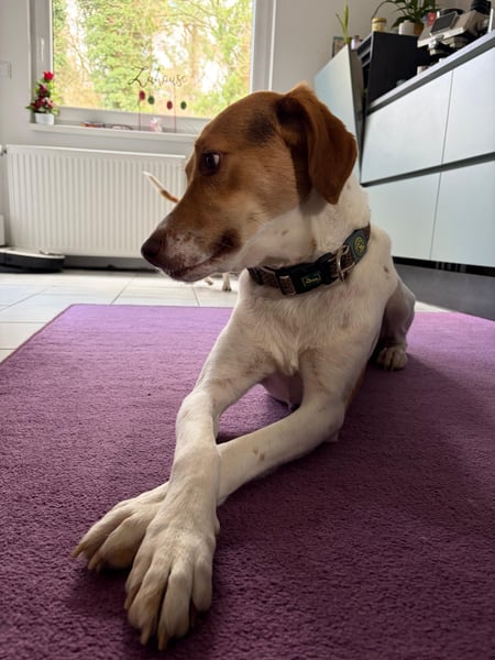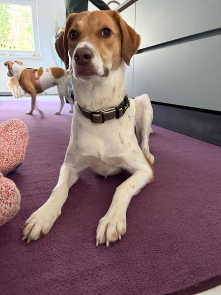 Geboren im März 2023, verbrachte Sally ihre ersten beiden Lebensjahre leider an der Kette. Entsprechend schüchtern kam sie in Deutschland an, und sie hat sich bereits ganz wunderbar entwickelt.