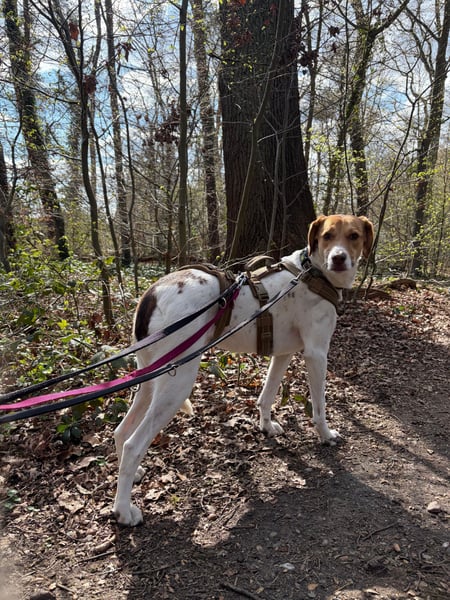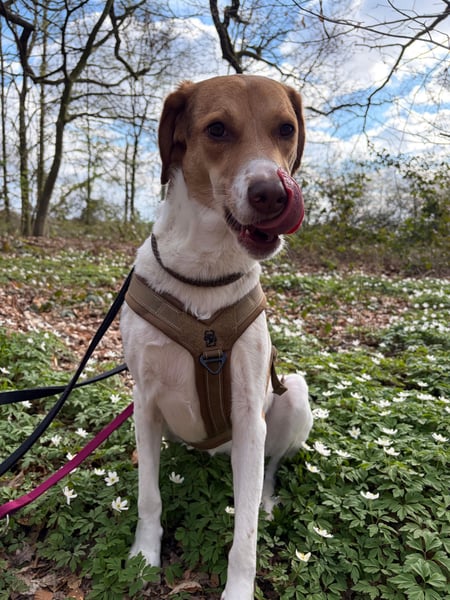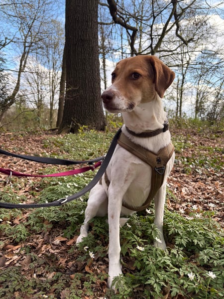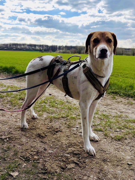 Sally liebt ihre Spaziergänge. Sie läuft sehr schön an der Leine und genießt ihre Umgebung mit neugierigem Blick. Besonders im Wald ist sie entspannt und ganz in ihrem Element. Dabei hilft ihr unglaublich, wenn ein Hundefreund dabei ist. Wenn es Zeit ist, das Geschirr anzuziehen, kommt sie inzwischen freudig angelaufen: das zeigt, wieviel Vertrauen sie schon aufgebaut hat.
