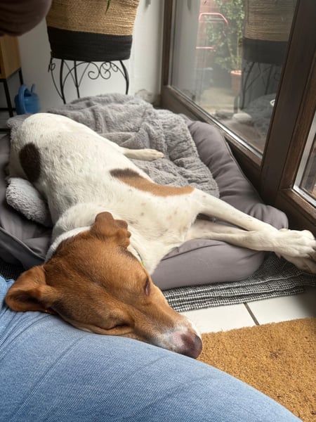 Sally stammt aus dem griechischen Tierschutz und lebt inzwischen in Köln, wo sie jeden Tag mehr aufblüht. In ihrer Pflegestelle teilt sie ihr Leben friedlich mit Kindern, Erwachsenen und einem weiteren Hund, und man merkt deutlich, wie gut ihr diese liebevolle Umgebung tut.