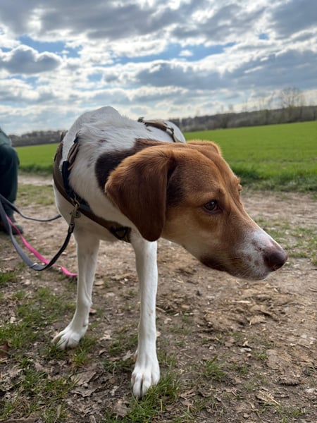 Optisch und charakterlich erinnert Sally an einen American Foxhound: sanft, freundlich, intelligent und feinfühlig. Dabei zeigt sie sich zugleich aktiv, naturverbunden und verspielt. Menschen gegenüber, die sie kennt, ist sie unglaublich loyal und menschenbezogen.