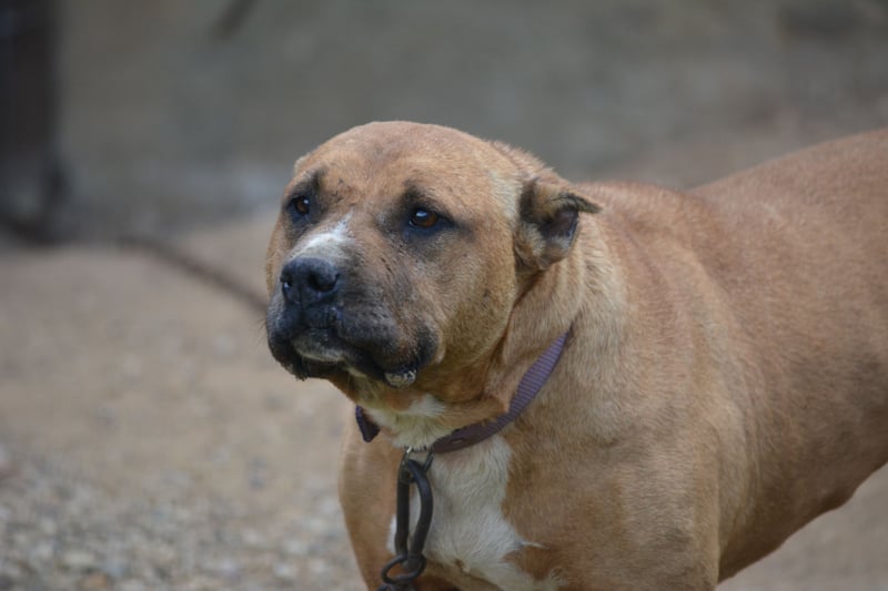 Eva wurde von Leuten illegal gezüchtet, die mit den Hunden Geld verdienen wollten. Sie haben sie teilweise in Hundekämpfe geschickt, um sich daran zu bereichern. Die Hündin ist absolut lieb zu Menschen. Für sie ist es schlimm, bei jedem Wetter draußen an der Kette leben zu müssen. Ihr fehlt ihr Mensch sehr. Eva darf aufgrund ihrer Rasse nicht nach Deutschland gebracht werden. Es gibt aber Länder, in denen diese Regelungen nicht greifen. Wir hoffen, dass sie auf unserer Homepage „gesehen” wird und endlich ihre Chance bekommt. Die Maus hätte es so sehr verdient.