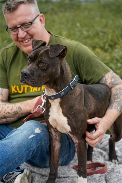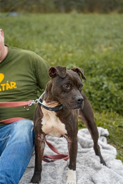 Die vierjährige Katica ist die wohl Zarteste unter unseren Staff-Mixen. Sie ist verträglich, unkompliziert und braucht nur ein kleineres Körbchen. An der Leine geht sie schon gut und aufgrund ihrer Körperstatur ist sie auch von aktiven Rentnern und größeren Kindern gut zu führen. Die noch junge Hündin mit dem niedlichen Gesicht ist mit Artgenossen verträglich und bereit für ein spielerisches Training, bei dem die Belohnungen nicht zu kurz kommen sollten. Noch erscheint sie etwas ausgemergelt und der Zwingeralltag erschöpft die Kleine. Was ihr fehlt, sind Ruhe und Gemütlichkeit. Und gegen Liebe&Zärtlichkeit hätte Katica auch nichts einzuwenden. Wer nimmt unsere Prinzessin in die Arme und trägt sie über die Schwelle hinein in ein neues Leben, in dem sie endlich zu voller Schönheit erblühen und sich entfalten kann?