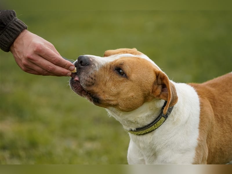 Wir vermuten stark, dass es sich hier um einen American Staffordshire Terrier-Mischling handelt. Wir können keine Garantie geben, um welche Rasse bzw. Rasse-Mix es sich bei Szepi tatsächlich handelt. Doch die Beteiligung eines sogenannten Listenhundes ist nicht zu verleugnen.