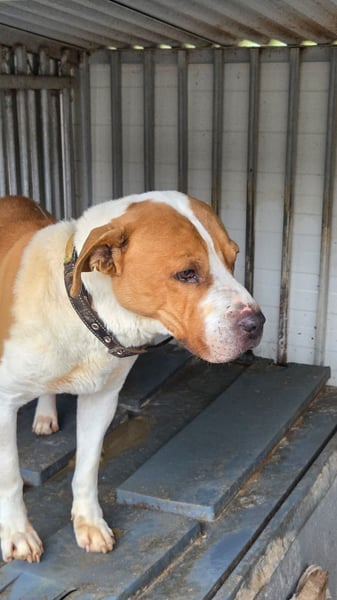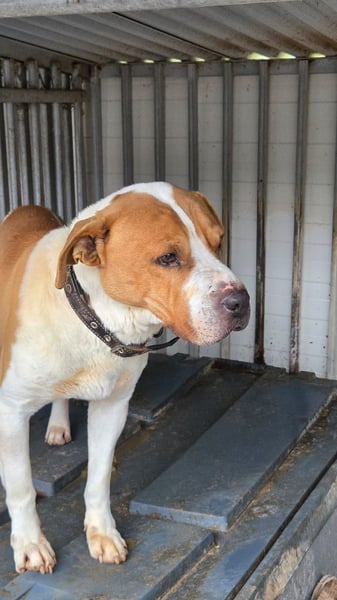 Bei unserem Besuch hat Daniel unserem Szepi die Hand gereicht und ihn auf einen Spaziergang eingeladen. Diese Einladung hat der kräftige Rüde gerne angenommen und wir haben die Chance genutzt, ein paar Eindrücke im beigefügten Video festzuhalten. Szepi lässt sich an der Leine führen und zeigt sich bewegungsfreudig und interessiert an den Gerüchen seiner Umgebung. Trotzdem scheint er eher ein Einzelgänger zu sein. Im Kontakt mit dem Menschen ist er noch ausweichend und wachsam. Wir vermuten, dass er etwas Zeit brauchen wird, um menschliche Nähe entspannt zulassen zu können. Geduld, Routinen und souveränes Auftreten könnten ihm helfen, das notwendige Vertrauen zu fassen. Für unseren Szepi suchen wir deshalb einen Einzelplatz bei hundeerfahrenen Menschen mit einem Grundstück, auf dem er die Möglichkeit hat, sich bei Bedarf auch mal zurückzuziehen. Für Kinder ist Szepi eher nicht geeignet. Seine Umgebung sollte möglichst ruhig sein.
