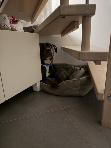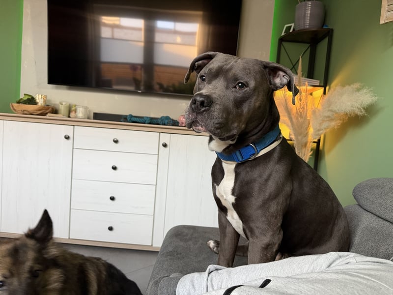 Ace ist ein American Staffordshire Terrier, geboren am 10.08.2021. Er ist ein sehr lieber, aufgeschlossener und neugieriger Hund, der sich gut mit Kindern, Katzen und anderen Hunden versteht. Insgesamt ist er ein sozialer und verträglicher Begleiter.
