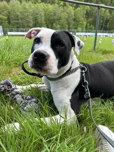 Aus gesundheitlichen Gründen und Zeitmangel muss ich mich leider von meiner 3-jährigen American Staffordshire Terrier Hündin trennen. Es ist keine leichte Entscheidung, denn sie ist ein wundervolles Herz auf vier Pfoten.